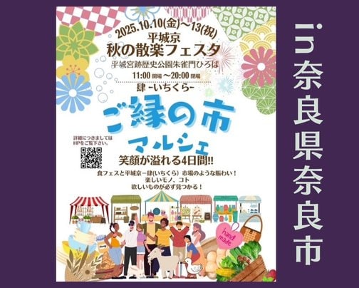 10月の10〜13日の4日間開催される天平祭というならでは有名なお祭りのマルシェブースで12と13日の2日間のみ出店予定です♪