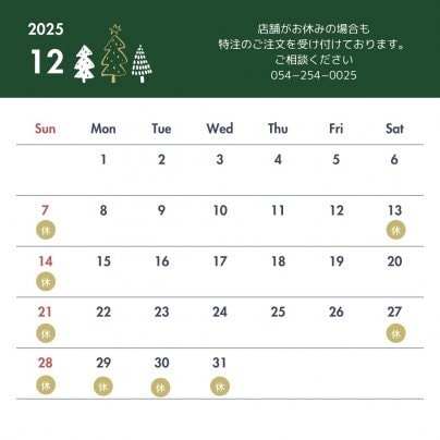 12月の店舗営業日