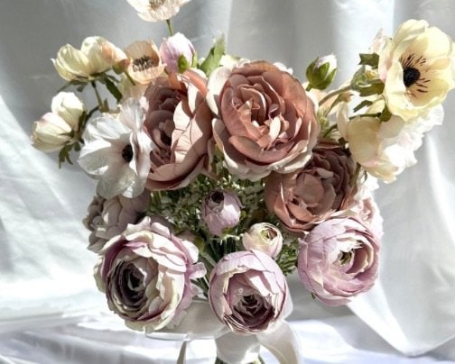 高品質な造花[アーティフィシャルフラワー]を使って仕立てる花嫁様の好きとハピネスが沢山つまった理想のウェディングブーケ・感謝の気持ちをお花と一緒にデザインするフラワーギフト