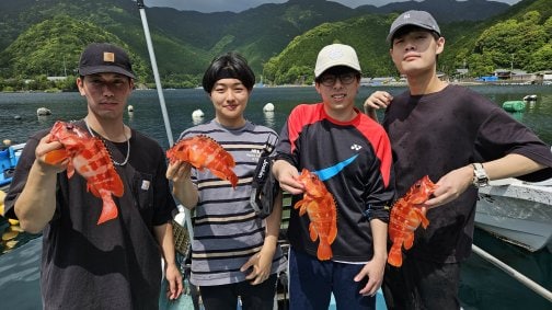 アカハタ、オオモンハタ、カサゴ、オジサン、ホウボウの五目釣り達成おめでとうございます🤣