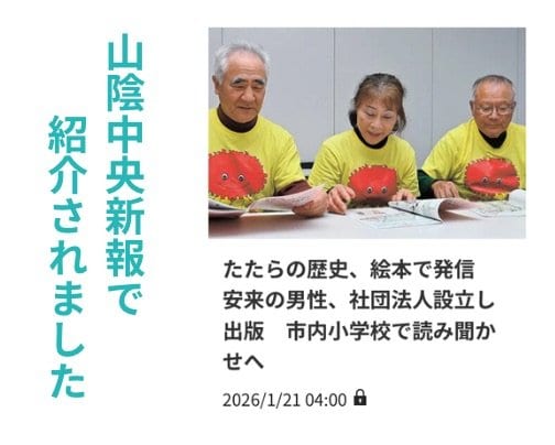 2026年1月21日発行の山陰中央新報で、一般社団法人けらちゃんの取り組みが紹介されました。今回は、オリジナル絵本「けらちゃんのまあるいしんふぉにー」の読み聞かせイベントに焦点が当たっています。