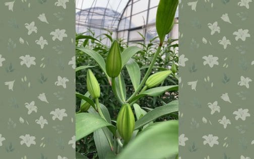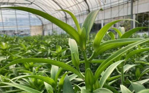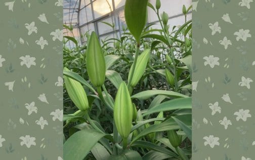 百合はビニールハウスで球根から約4か月間育て、開花間際(12月〜3月)に刈り取って出荷しています。