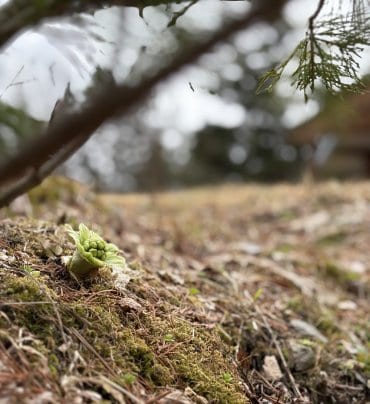 道路から一歩入ると、旅館として使われていた建物と敷地内を散策できる森が現れます。標高1,000mの冷涼な空気を感じ、ゆったり植物に触れ、鳥たちの声を聴いてください。