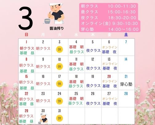 2026年3月 日輪寺&オンラインクラス&穿心塾予定表