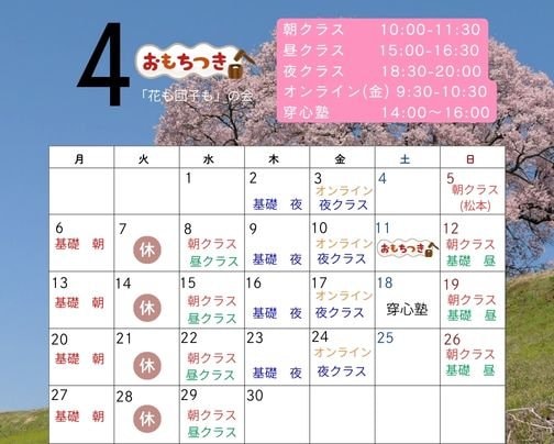 2026年4月 日輪寺&洞光寺&オンラインクラス&穿心塾 予定表