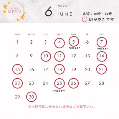 6/14 土曜日10時/14時 6/30 月曜日10時/14時