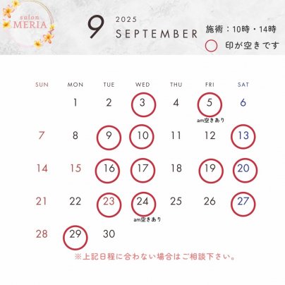 9/9火曜日 10時/14時 9/27土曜日10時/14時