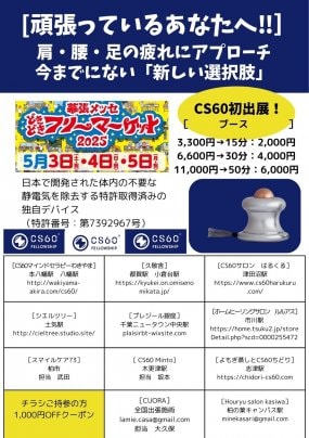 5/3〜5に幕張メッセで開催される『どきどきフリーマーケット』の『癒しコーナー』にてCS60初出展いたします✨✨