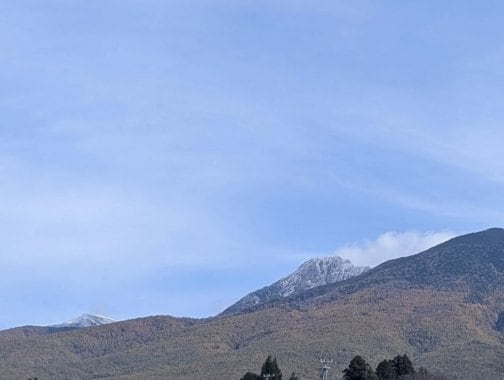昨日の夕方、一瞬だけ雨風がすごくビックリしたのですが、一夜明け八ヶ岳が白く帽子を被ってました😆