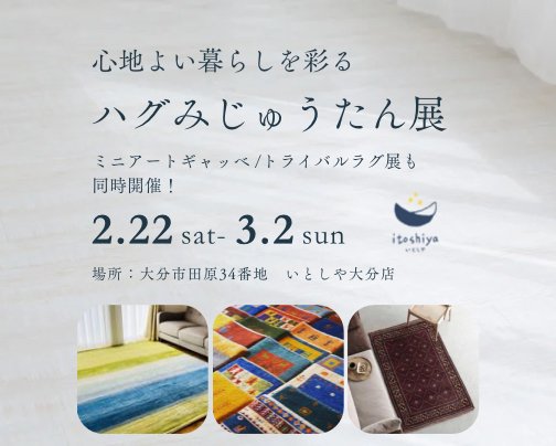 【ハグみじゅうたん展inいとしやミニアートギャッベ/トライバルラグ展も同時開催!2月22日(土)から!】