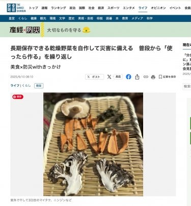 「長期保存できる乾燥野菜を自作して災害に備える」