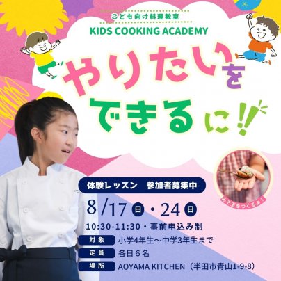 愛知県半田市のレンタルキッチンと子ども向け料理教室AOYAMA KITCHEN(アオヤマキッチン)からのお知らせや最新のイベント・レッスン情報などをお届けします。