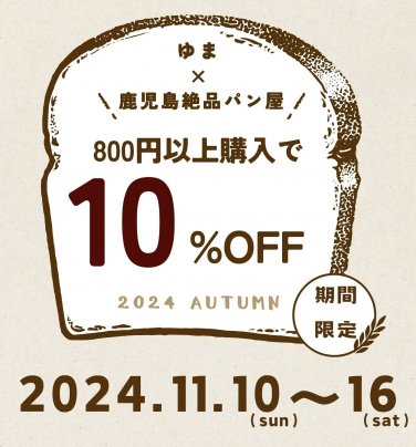 9/20(土)〜23(火)にイオンモール鹿児島で開催されるMALL de Panだ〜ゆまサリのパン祭り〜の来場者限定クーポン配信決定🥰 クーポンGETしてお得にパンを楽しもう!!