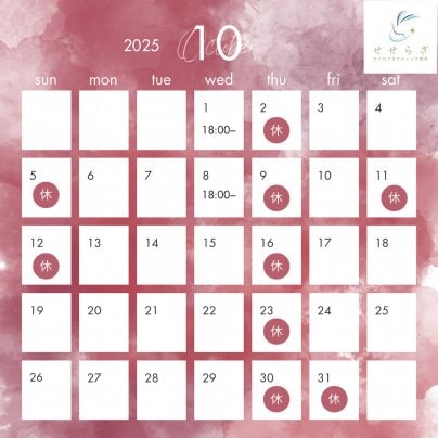 10月の営業日をお知らせします。ご予約をされる際にご活用ください(^^) …続きを読む