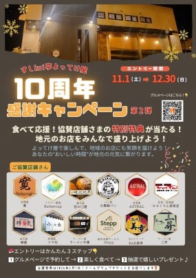 10周年企画第2弾は地元のお店と繋がろう!応援しよう🎶地域のお店の特別特典が当たるキャンペーンです✨