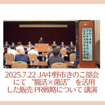 JA中野市きのこ部会様にて「腸活×菌活を活用したPR戦略」について講演しました。生産者様に腸活のビジネス活用を提案させていただきました。 …続きを読む