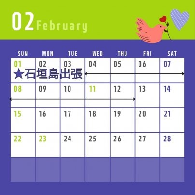 1月から引き続き、2月12日まで石垣島出張です。