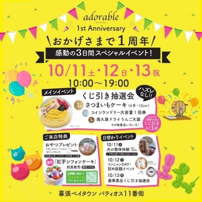 2024・9月 幕張ベイタウンにOPENし、皆さまのおかげで1周年を迎えることが出来ました。10/11〜13日の3日間☆彡1周年記念アニバーサリー☆彡を開催しました。たくさんの皆さまとワンちゃんたちにご来店いただきほんとうにありがとうございました。