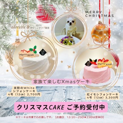 ♥ワンちゃんネコちゃんとみんなで楽しむXmasシフォンケーキ店頭販売中♥