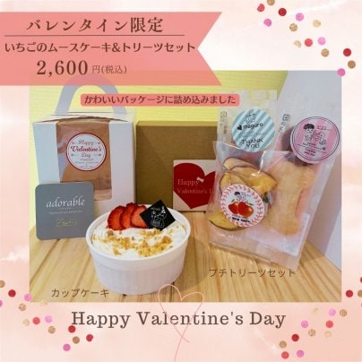 新登場‼♥バレンタイン期間限定♥いちごのムースケーキ&はんぶんずっこプチトリーツセット