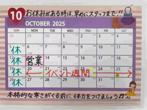 10月も4週目(10月20日〜25日)にイベント開催します!!今月は何が出るかな??お楽しみに!! …続きを読む