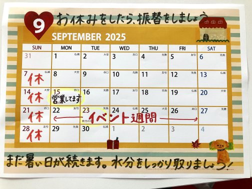 9月は4週目(9月22日〜26日)はイベント開催予定しております!!お楽しみに!! …続きを読む