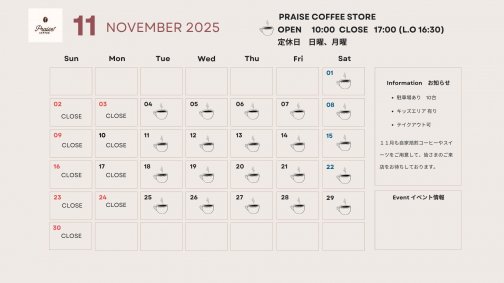 プレイズコーヒーストアの11月の営業予定をお知らせいたします!