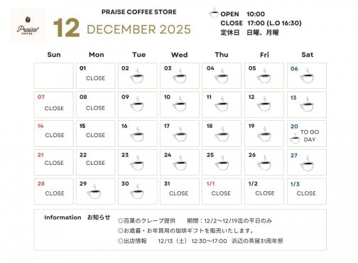 プレイズコーヒーストアの12月の営業予定をお知らせいたします!