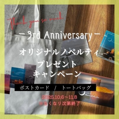 3周年の感謝を込めて、期間中にお買い上げいただいたお客様へブランドオリジナルのノベルティをプレゼントいたします。