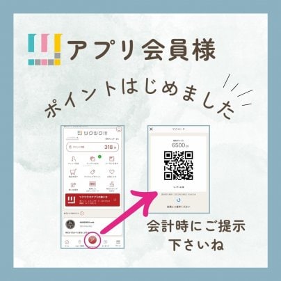 アプリ会員の皆様、当店でもポイント付与が始まりました。