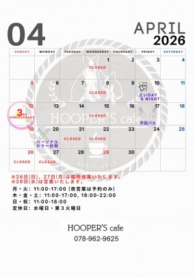 4月12日(日)はHOOPER’S cafeオープン3周年を迎えます。