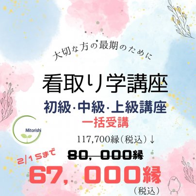 看取り学講座初級・中級・上級一括受講43%off‼️