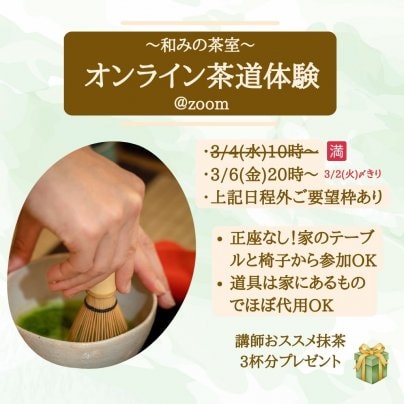春のオンライン茶道体験 残席わずかです!