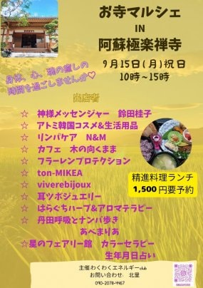 夏はお休みしていた”お寺マルシェ”が再開です。