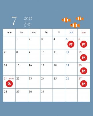 7月も後半に突入しますが今月のカレンダーを