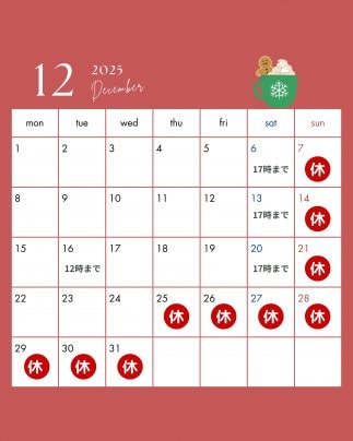 12月のみ、平日の受付時間が変わります🕰️