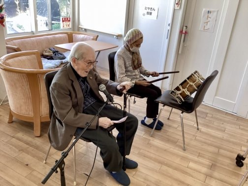 町内の94歳の方に来ていただき民謡を披露していただきました。手拍子をしたりと楽しまれたようです。 …続きを読む