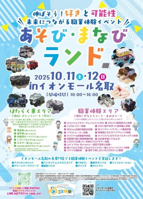 未来を担う子どもたちが遊びながら学び、多様な職業にふれる機会を提供することを目的に、体験型イベント「あそび・まなびランド in イオンモール名取」を開催します。