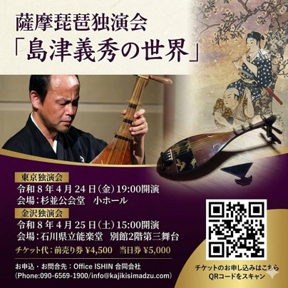 【チケット販売開始】薩摩琵琶独演会「島津義秀の世界」東京・金沢公演(2026年4月)
