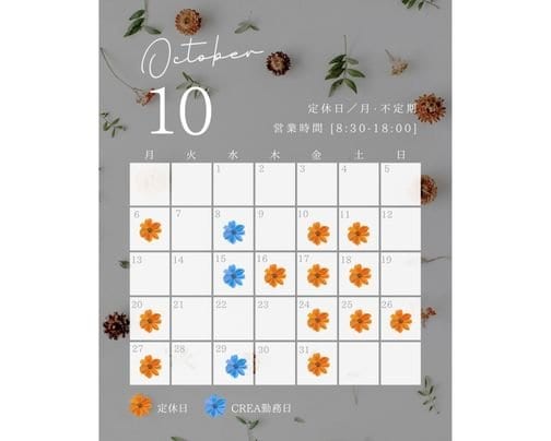 【10月営業日のお知らせ】です。