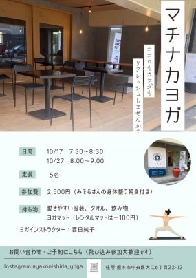 🔸動きやすい服装、タオル、飲み物、ヨガマット(レンタルあり)