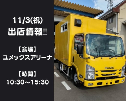 11/3は塩尻市のユメックスアリーナ南側駐車場にあります、多目的広場にて出店します!