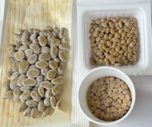 いにしえの納豆を市販のものと並べて写真を撮ってみました。