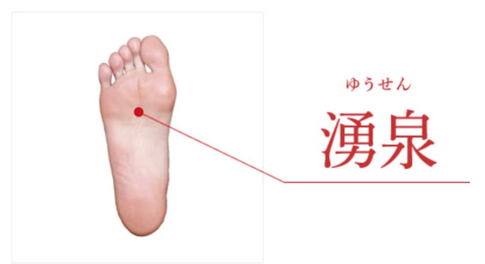 土踏まずのやや上、人差し指と中指の骨の間にあるツボ。