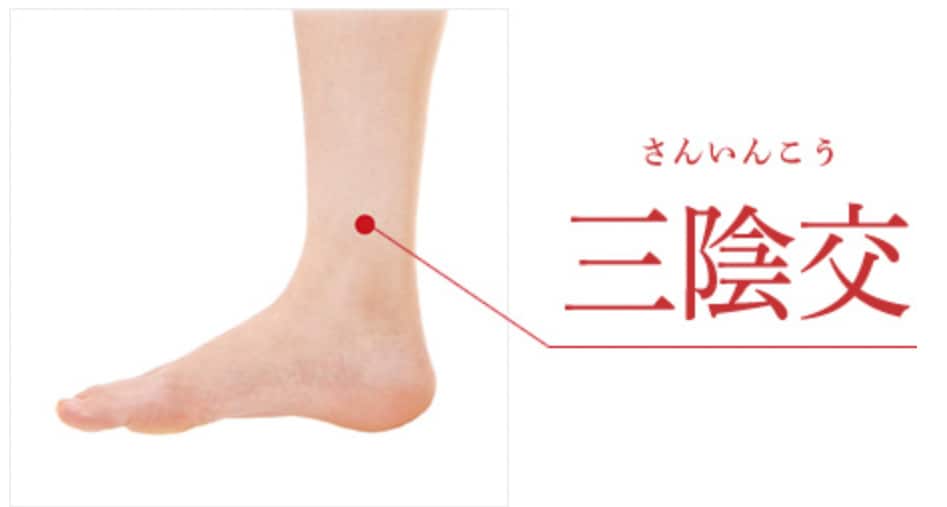 内くるぶしの中心から指幅4本上がったところにあるツボ。