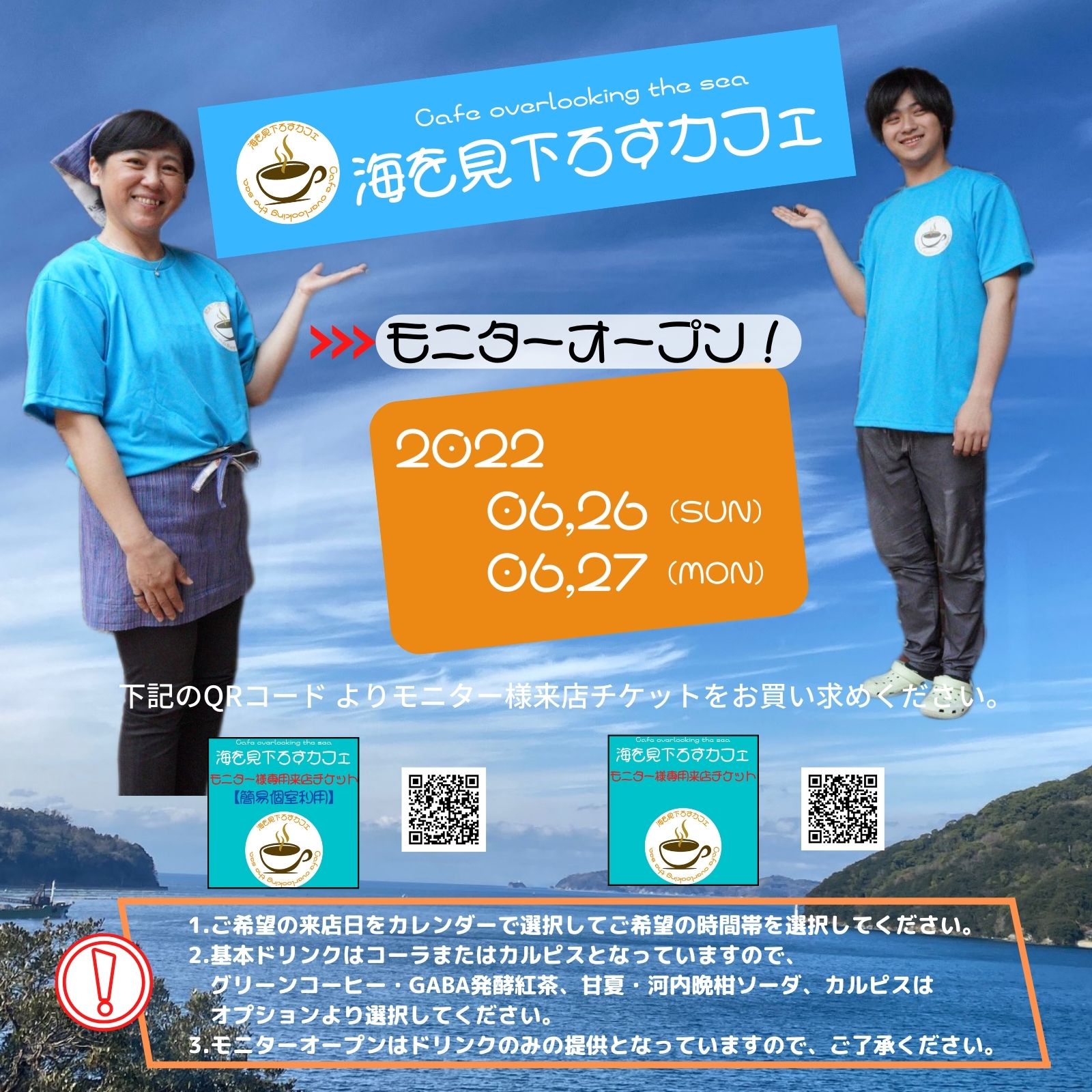 第13回の今回は、いよいよ『海を見下ろすカフェ』プレオープン(モニター営業)のお知らせです!