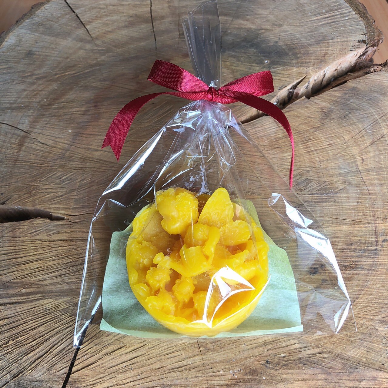 自分たちで精製し成形したミツロウ(約60g)をプレゼントとしてお持ち帰りできます。