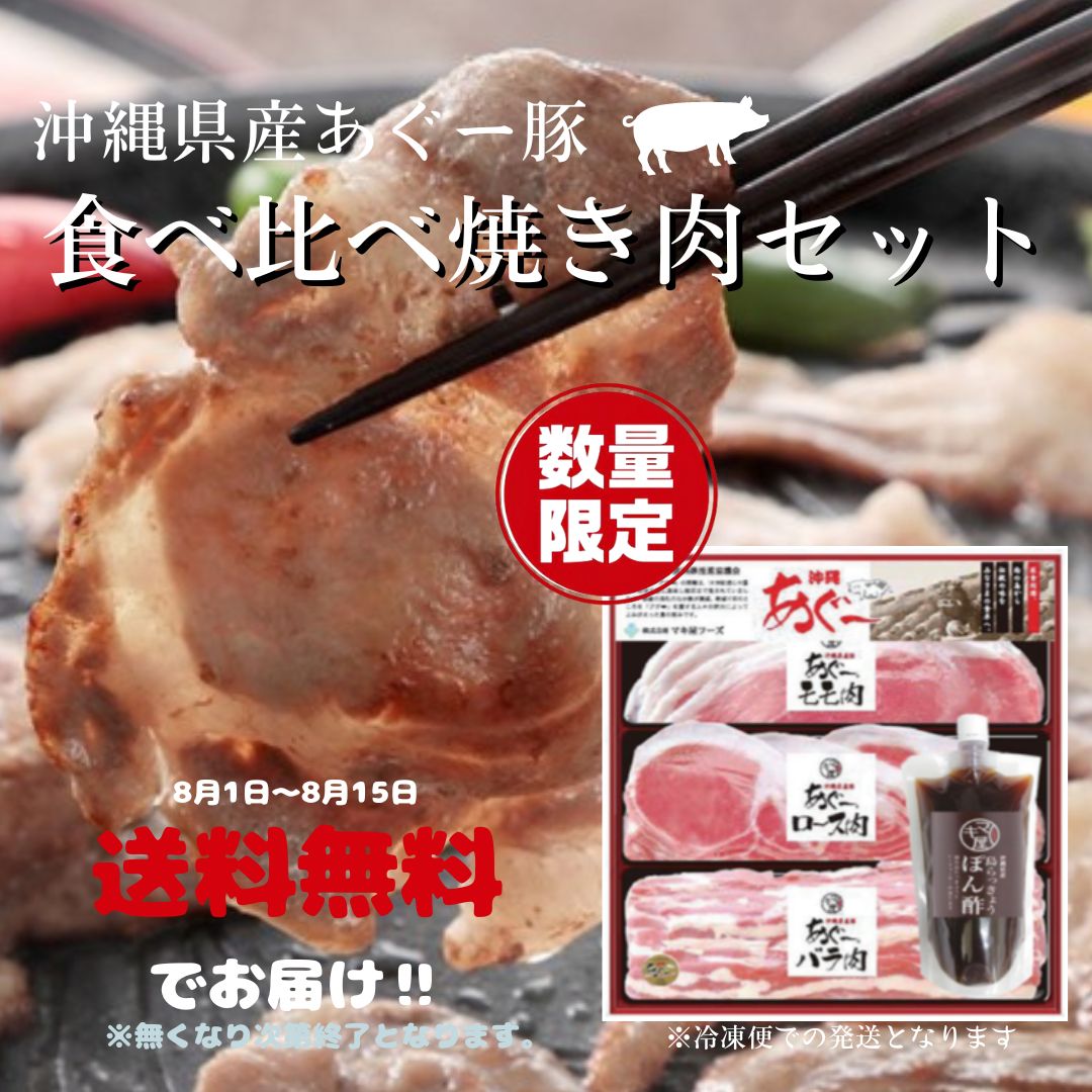 【期間限定】 沖縄県産あぐー豚 食べ比べ焼き肉セット ★数量限定送料無料でお届けします