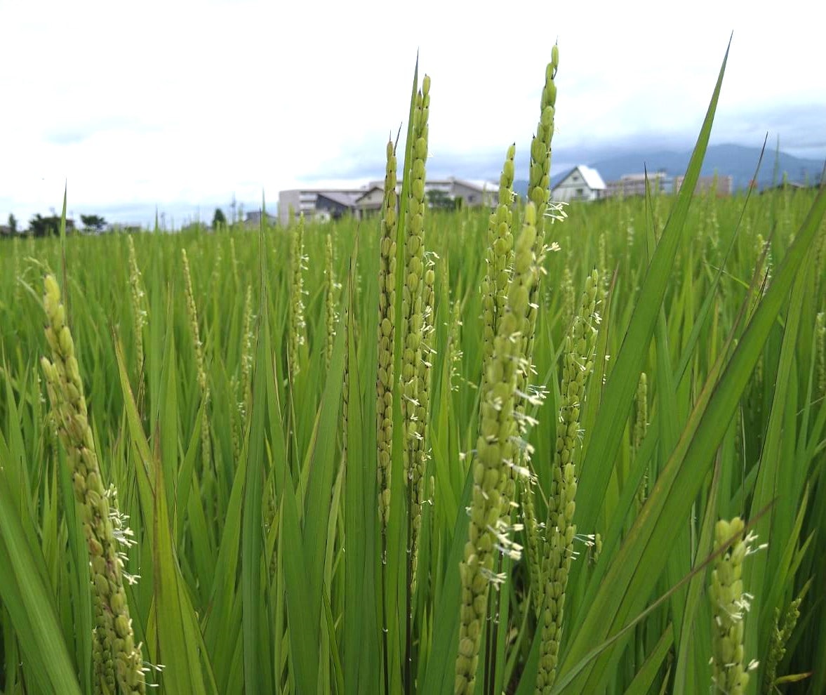 早生品種の「古代米・朝紫」と「こがねもち」の花が咲きました。