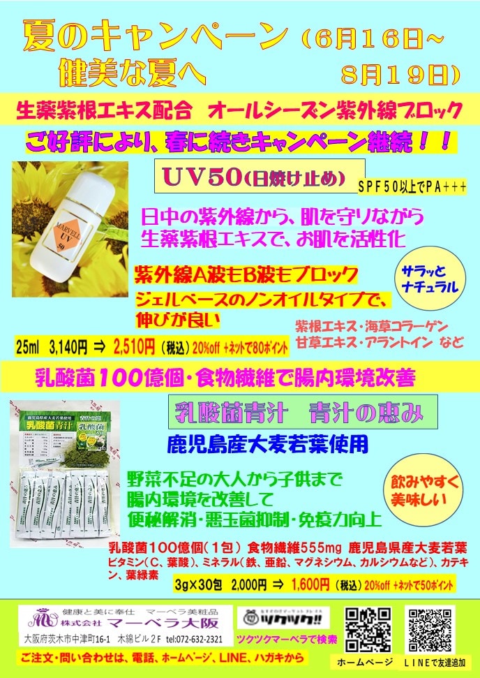 マーベラニュース VOL.20 「夏のキャンペーン」終了間近!!(〜8月末まで)